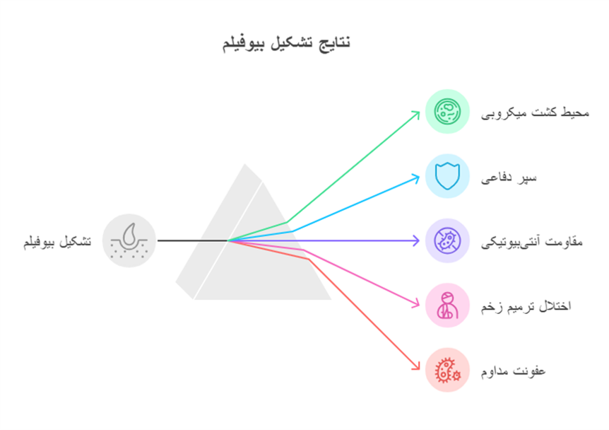 بیوفیلم لایه‌ای چسبنده به سطوح زخم است ، انباشته از ماکرومولکول‌های زیستی و میکروب‌های درحال تکثیر که با ایجاد محیط مناسب برای رشد میکروب‌ها و محافظت از آنها در برابر آنتی‌ بیوتیک‌ها