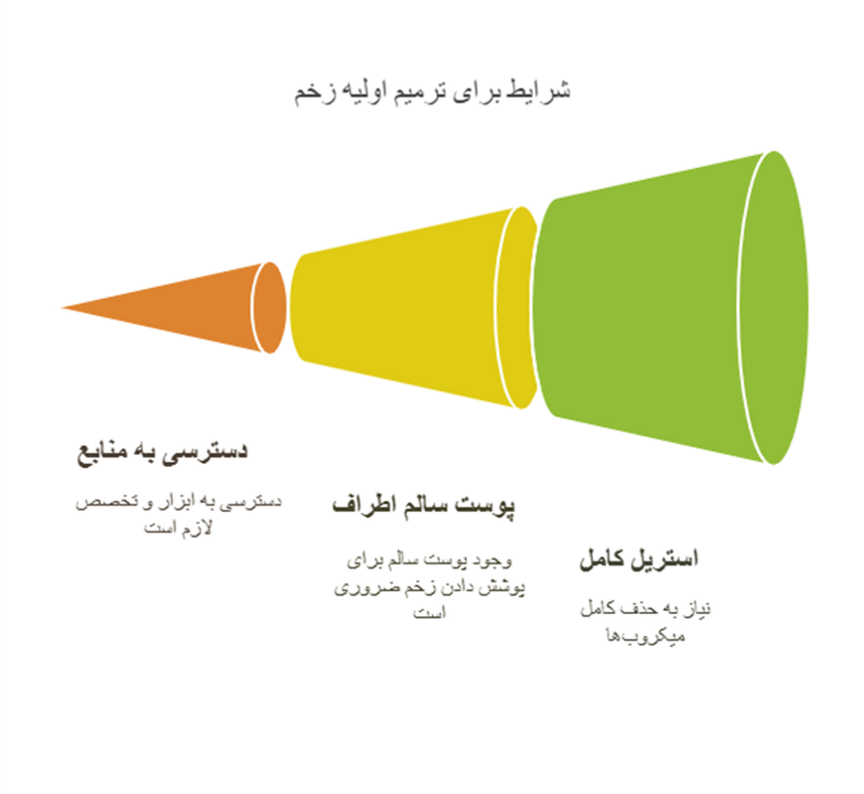 اما همه زخم‌ها قابل ترمیم نیستند ، چون برای ترمیم اولیه موارد زیر لازم است :