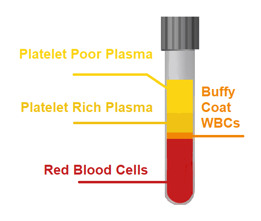 پس از سانتریفوژ گلبول های قزمز خون کاملا رسوب میکنند و حدود چهل درصد پائین لوله را پر میکنند ؛ روی آنها یک لایه نازک ایجاد می شود که عمدتا از گلبولهای سفید تشکیل شده است و پلاکت غلیظ هم دارد ، بر روی این لایه پلاسمای خون قرار دارد که غلظت پلاکتها از پائین به بالا کمتر میشود ، معمولا یک سوم پائینی به عنوان بخشی با داشتن غلظت پلاکتی که به طور متوسط سه برابر غلظت پلاکت خون است تلقی میشود و دو سوم فوقانی تقریبا به اندازه خود خون غلظت پلاکت دارد .